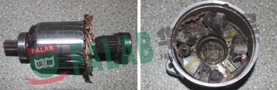 某汽车配件厂向某农业机械公司购买三轮车,用于运送工厂生产废料。某天三轮车运送废料到达堆积场,自卸过程中起动机突然爆裂,飞溅物击伤车侧人员。就此安全事故的发生,当事双方引发责任纠纷并诉至法院,该人民法院立即委托我单位对涉案三轮车起动机爆裂原因进行质量鉴定。